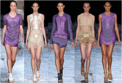 Body-con dresses pieced together from techy mesh.